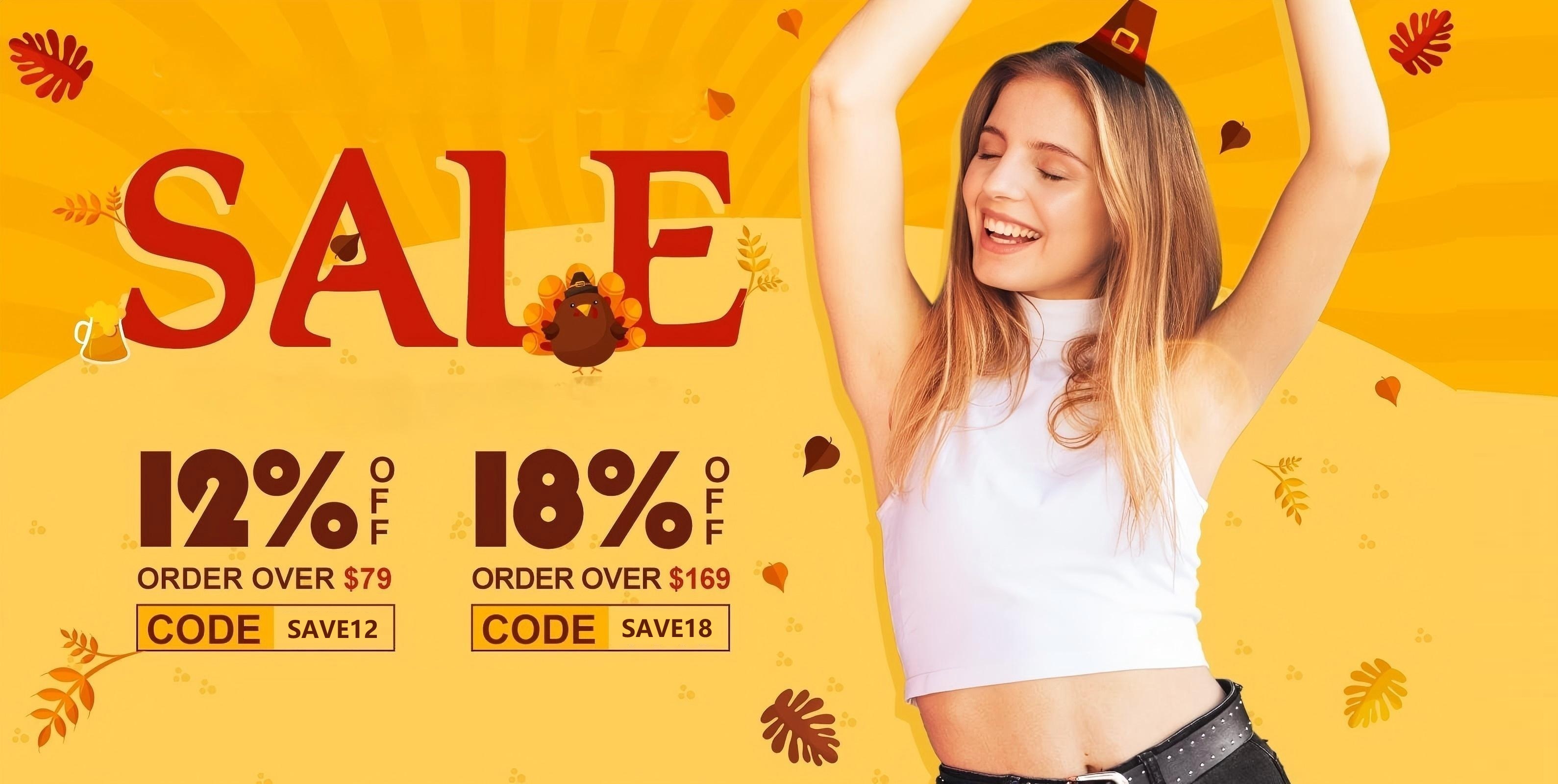 12% OFF $79+ · 18% OFF $169+